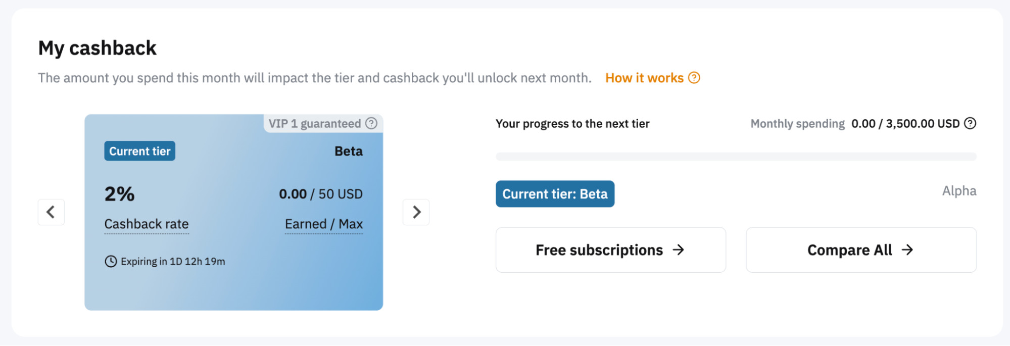 1. VIP users will never fall below the default tier and they will enjoy a guaranteed cashback rate.