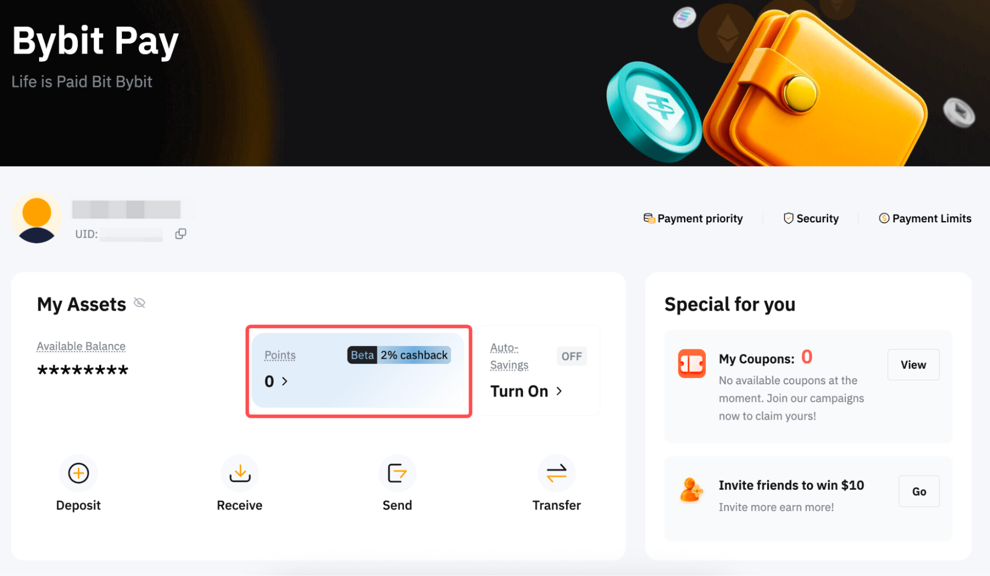 You can earn more points by advancing your VIP level. Moving up VIP levels will also increase your monthly maximum point capacity and cashback rate. Find more details on Bybit Pay Rewards.