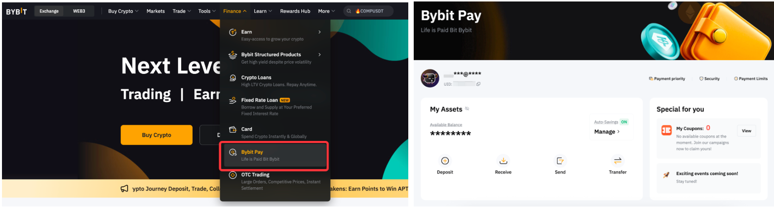 If you are on Bybit’s Website, click on Finance and tap Bybit Pay.