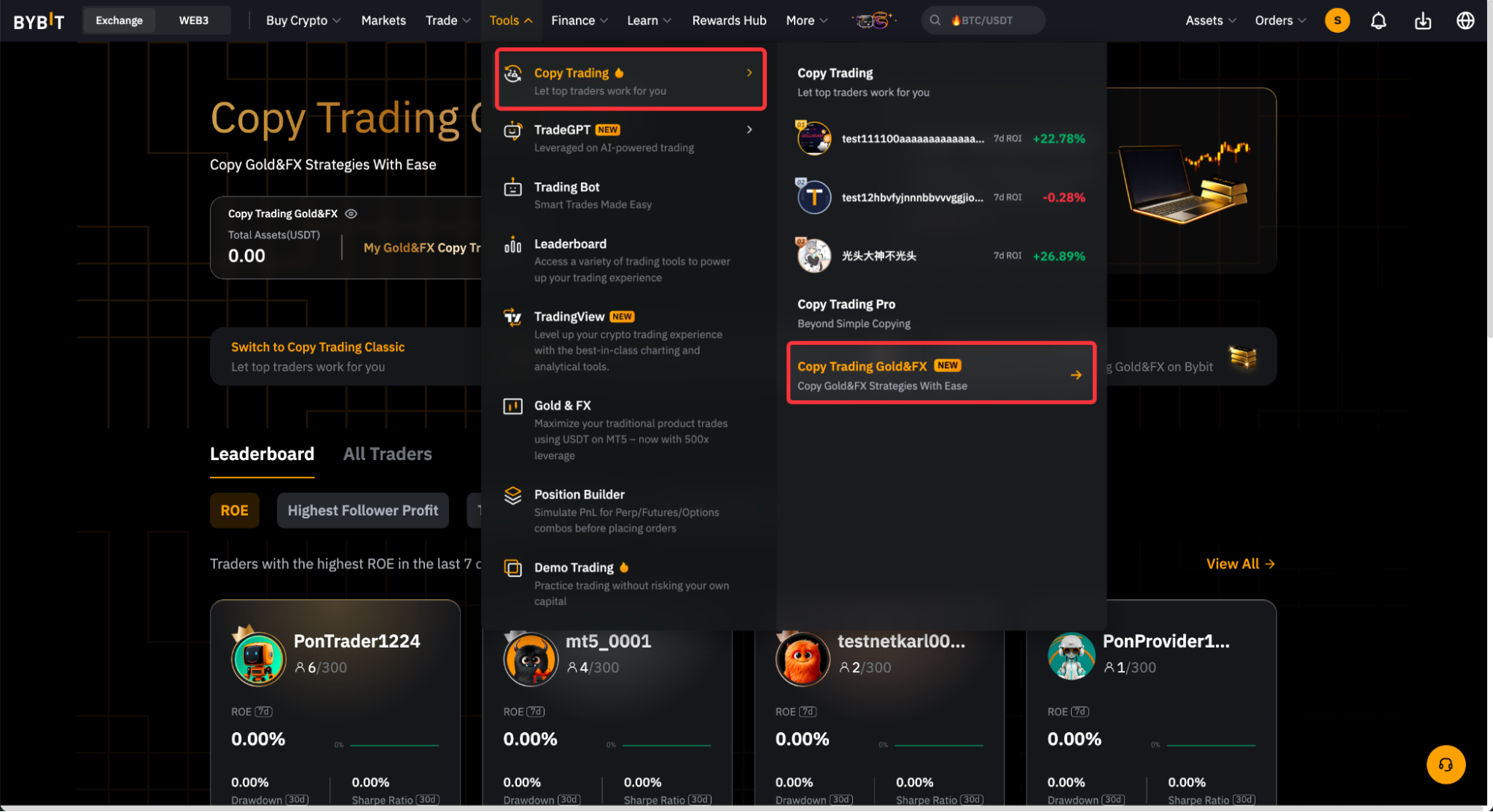 Step 2: Navigate to Tools → Copy Trading → Copy Trading TradFi.