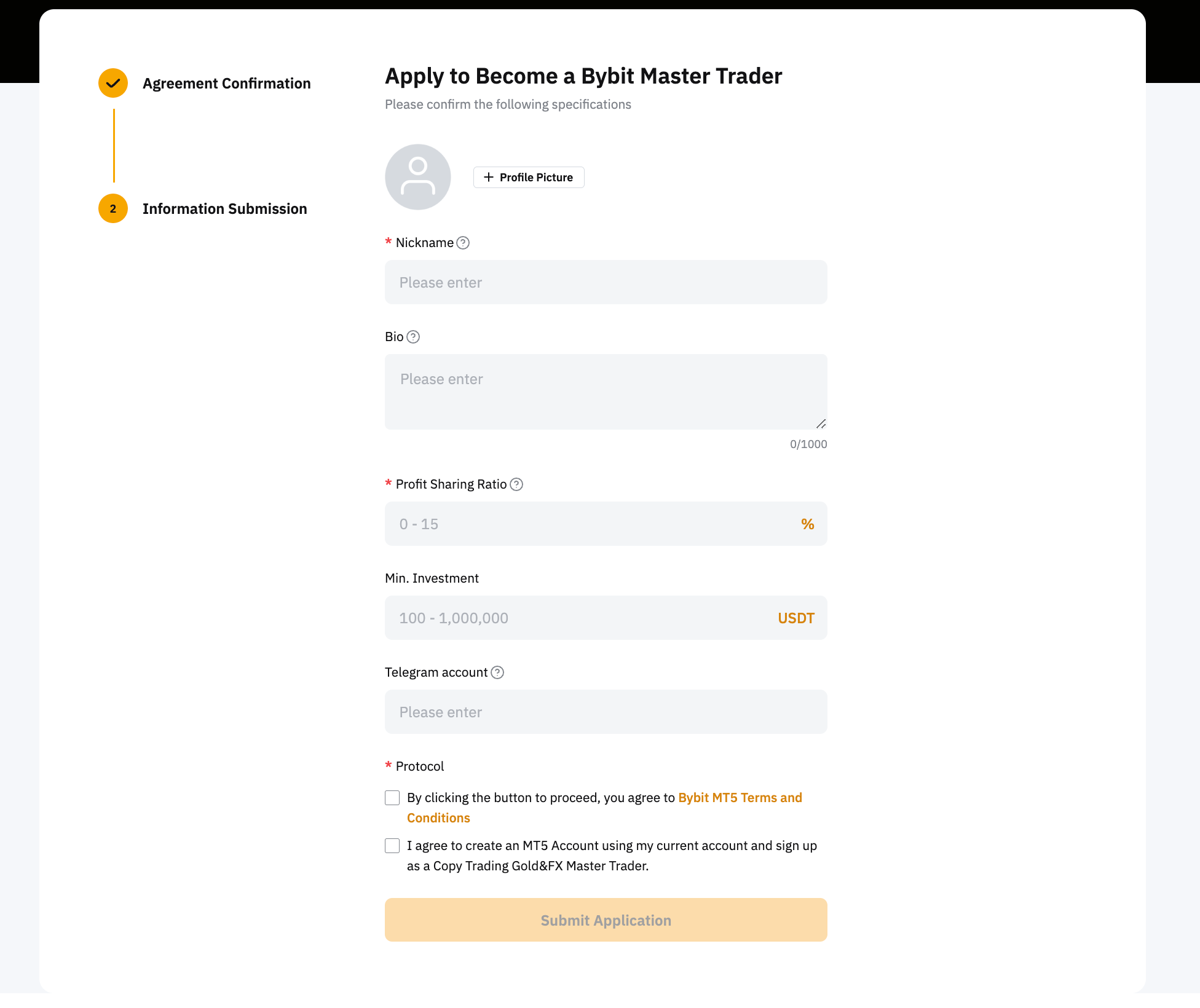 • Your nickname must be unique, within a 30-character limit, and not used by another Master Trader on the Copy Trading platform.