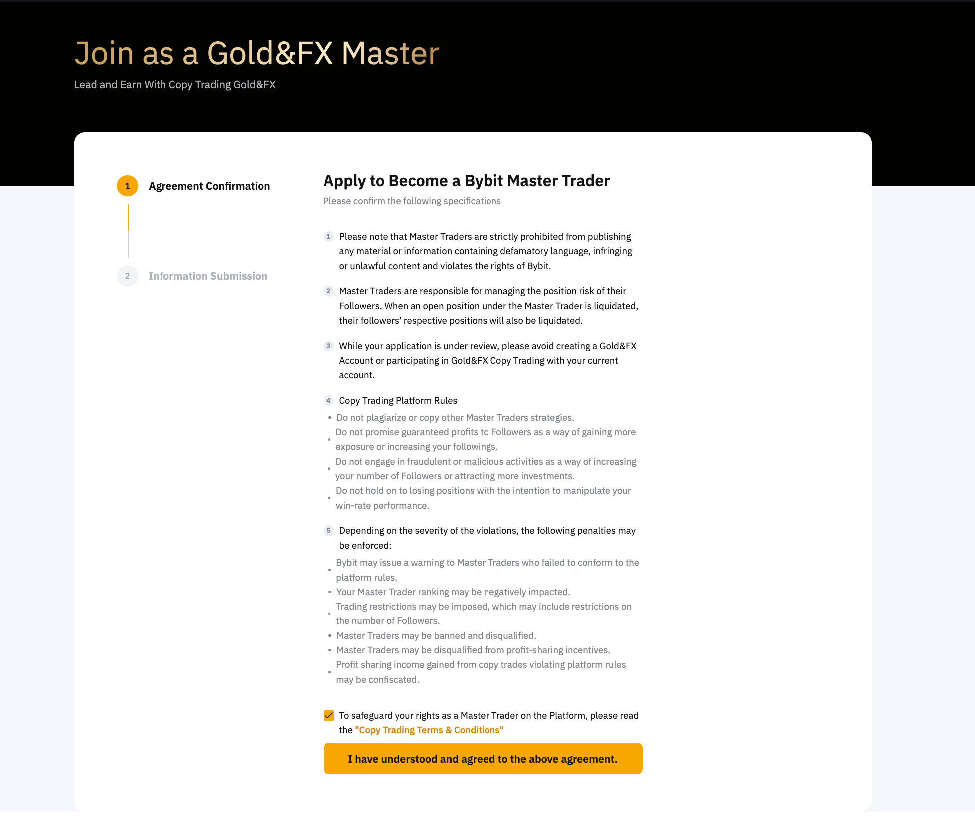 5. Read the Master Trader Agreement: Familiarize yourself with your responsibilities and potential breaches before applying.