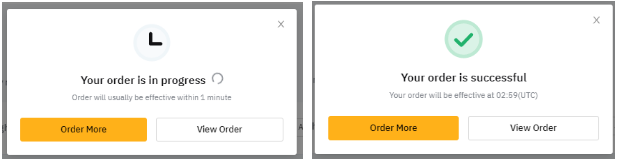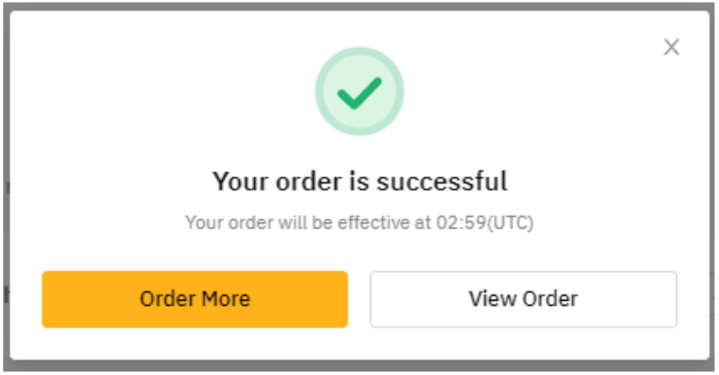 Step 5: Your order is being processed. Your order status will usually be confirmed within 30–60 seconds after you submit your order. Please wait patiently for the order confirmation, then you are able to see it under the Effective Orders page. Once the subscription is successful, your return will begin to be calculated.