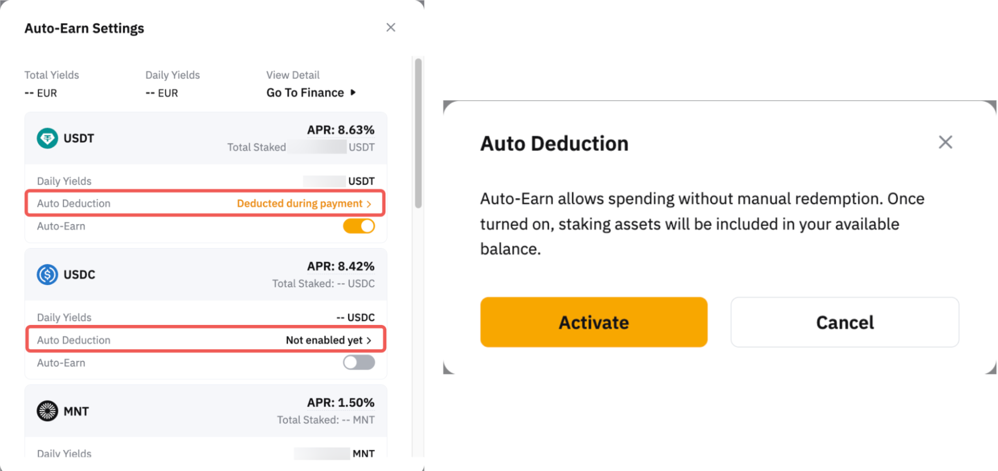 For more information on how the daily yield is calculated and answers to other common questions, please refer to the FAQ — Easy Earn.