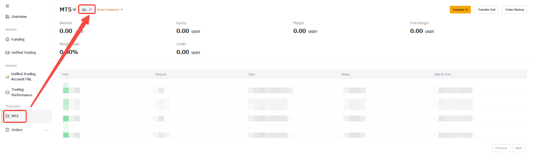 1. The MT5 login ID section will be blank in your MT5 Asset page.