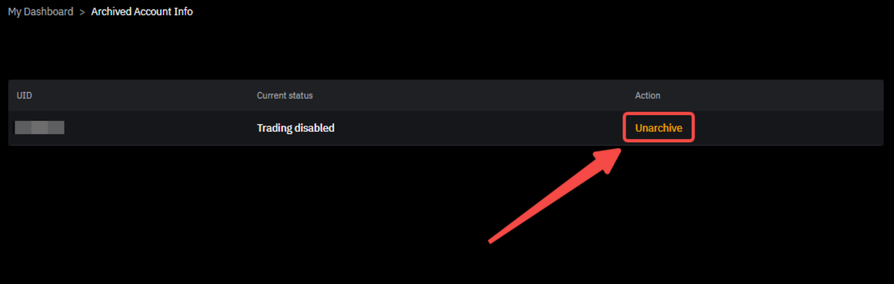 Your account is successfully unarchived! You will be redirected to the dashboard below where you can use the account for trading on MT5 again.