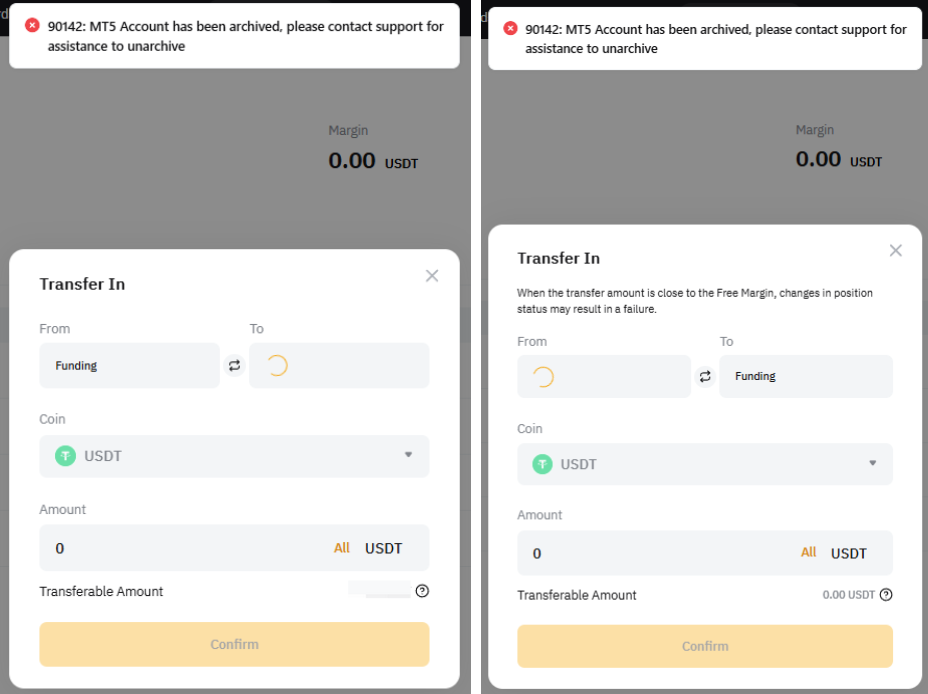 3. You will see an error message when attempting to transfer funds in and out of your MT5 account.