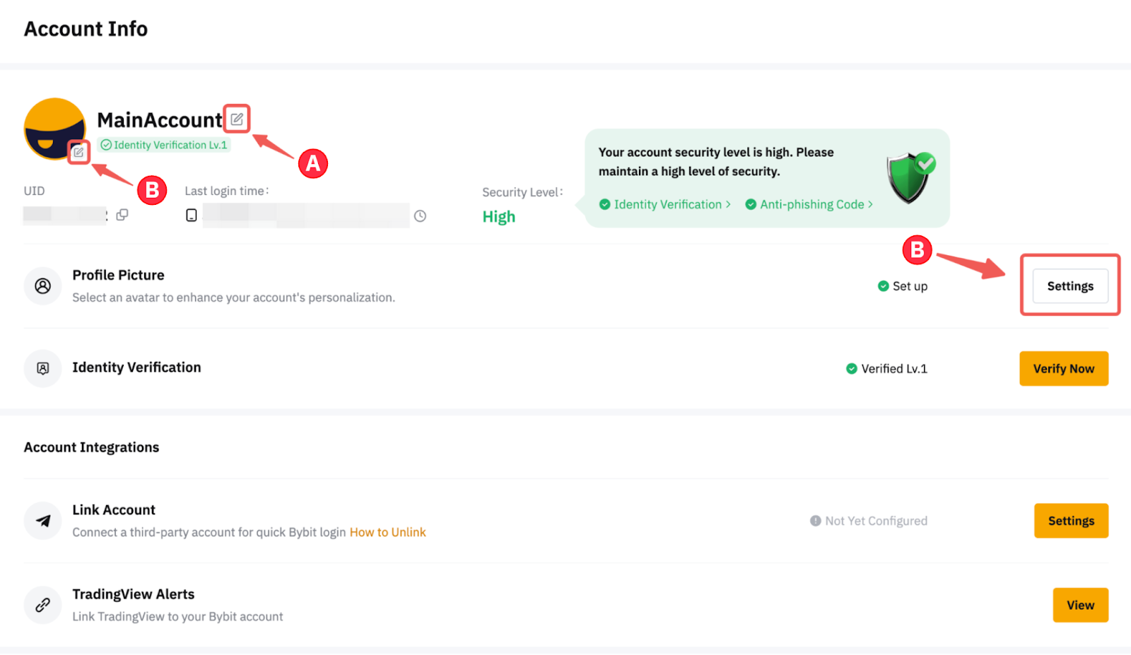Step 2: To modify your profile nickname, simply click on the edit icon next to your current name (A), enter your new username, and click on Confirm.