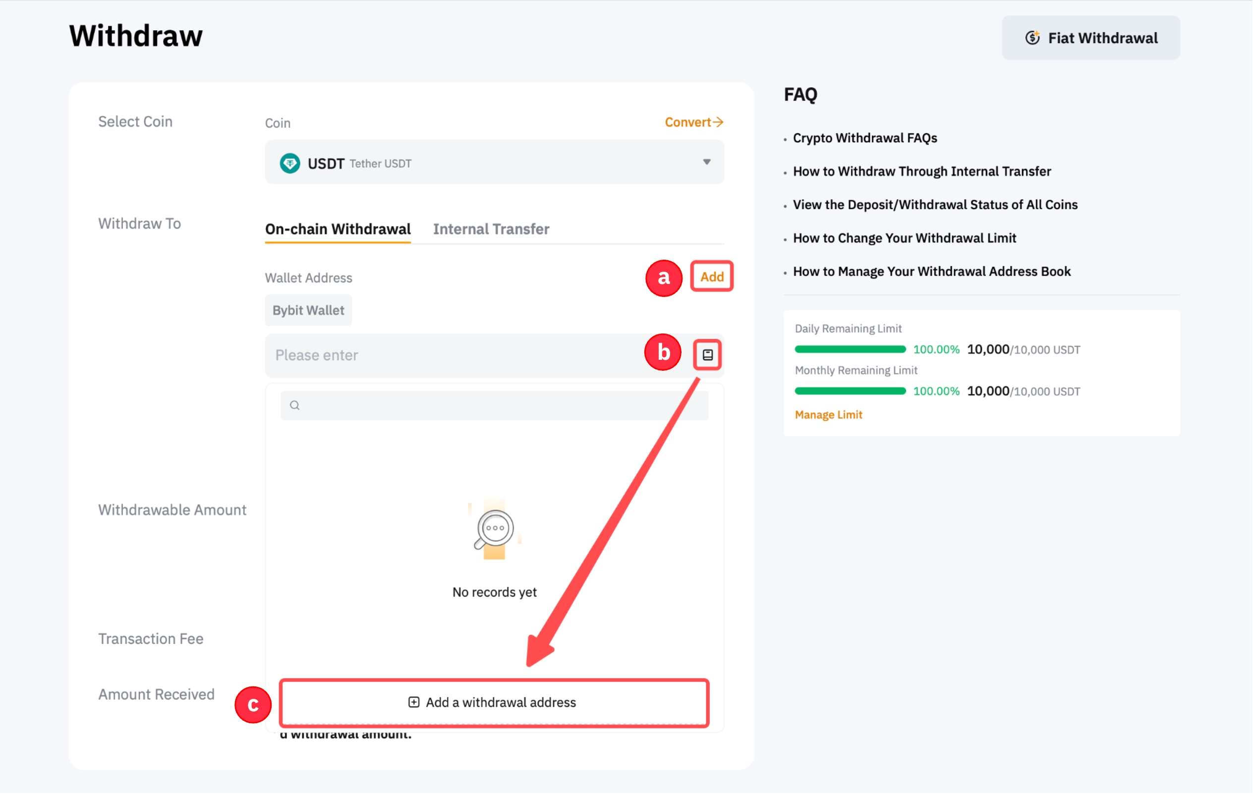 3. Add a new withdrawal wallet address to your Bybit Withdrawal Wallet Address Book.