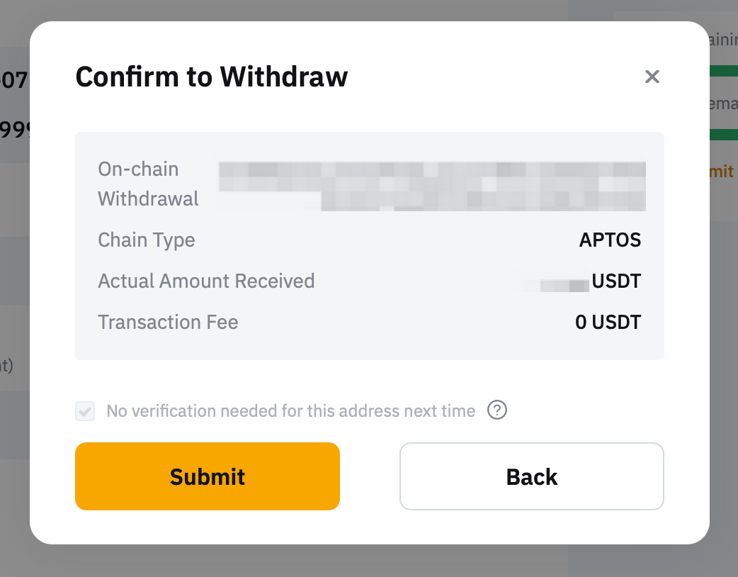 Here’s a step-by-step guide to help you submit an on-chain withdrawal request. For withdrawal via internal transfer, you can refer to here.