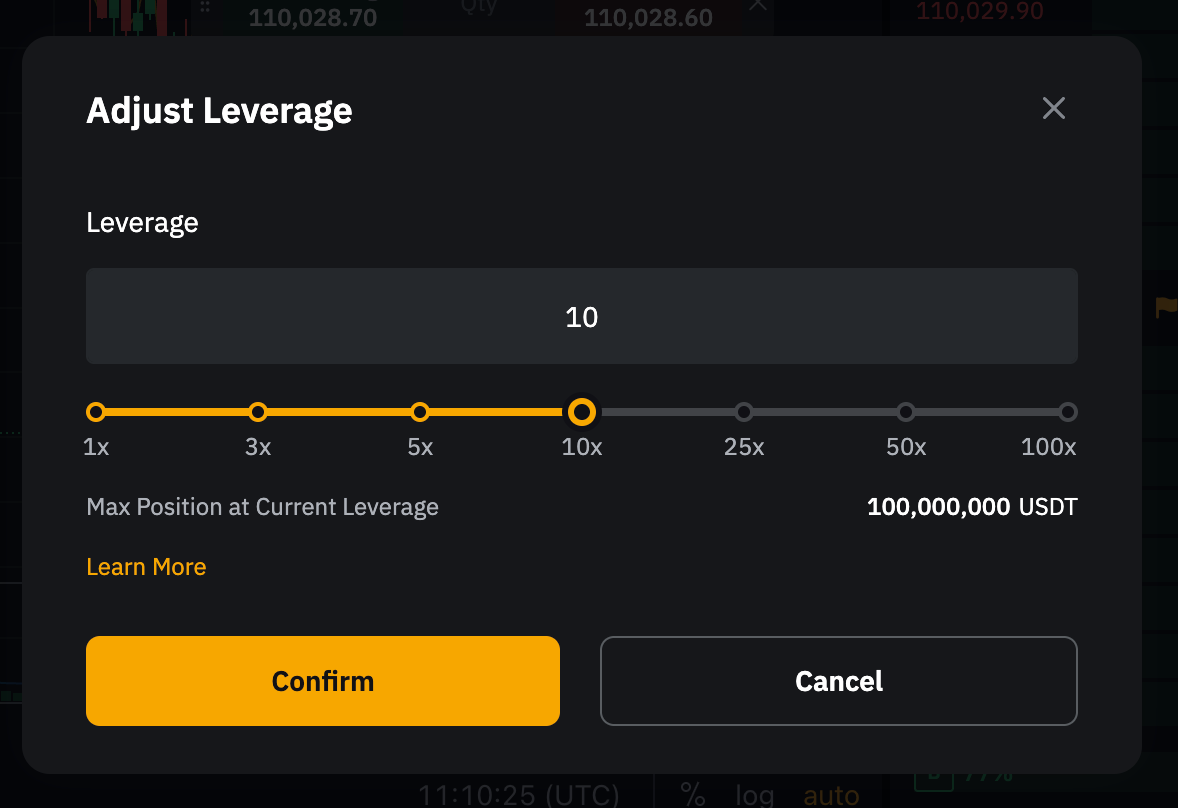 — If you have no position or active orders, and the existing leverage used is higher than the newly adjusted maximum leverage allowed, you may encounter an error message restricting you from placing an order. Please manually adjust the leverage to align with the adjusted maximum leverage allowed.