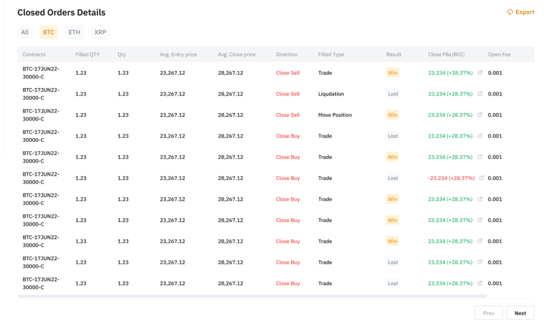 In the List tab, you can access all trades associated with the position. This tab exclusively displays fully closed positions. For order details related to partially closed positions, you can refer to Details of Closed Orders under Trading Performance.